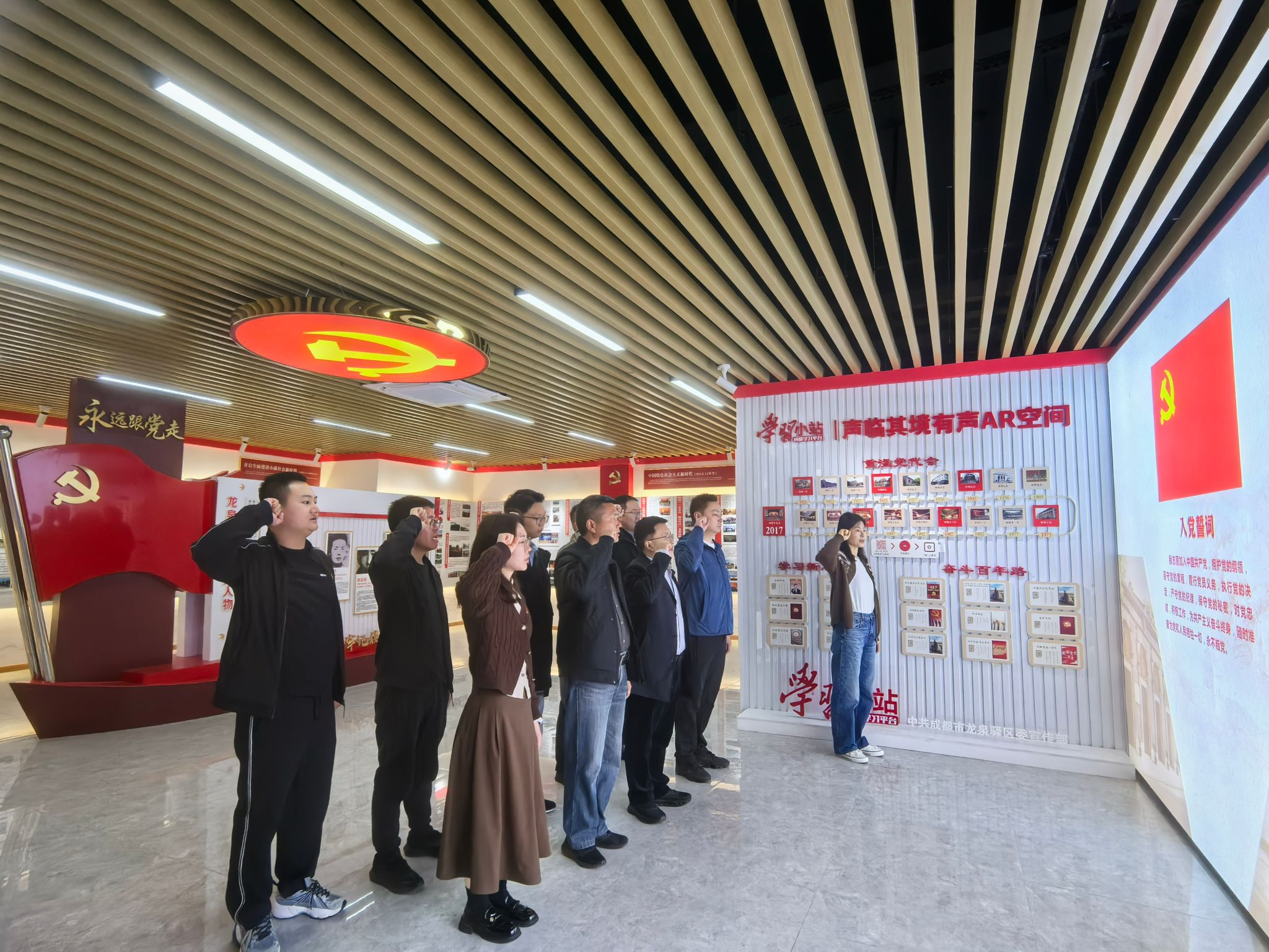 在龙泉驿区红咏社区党史教育基地,大家聆听革命故事,感受红色经典,共忆峥嵘岁月。参观过程中,大家认真聆听,仔细学习观看龙泉驿人民在党的领导下进行的艰苦卓绝的革命史、辛勤探索的建设史、奋勇搏击的改革史和开拓创新的奋进史,通过一幕幕的经典再现,重温革命先烈们光辉历程,感悟革命先烈们忠诚于党、心系群众、不畏牺牲、无私奉献的大无畏精神。