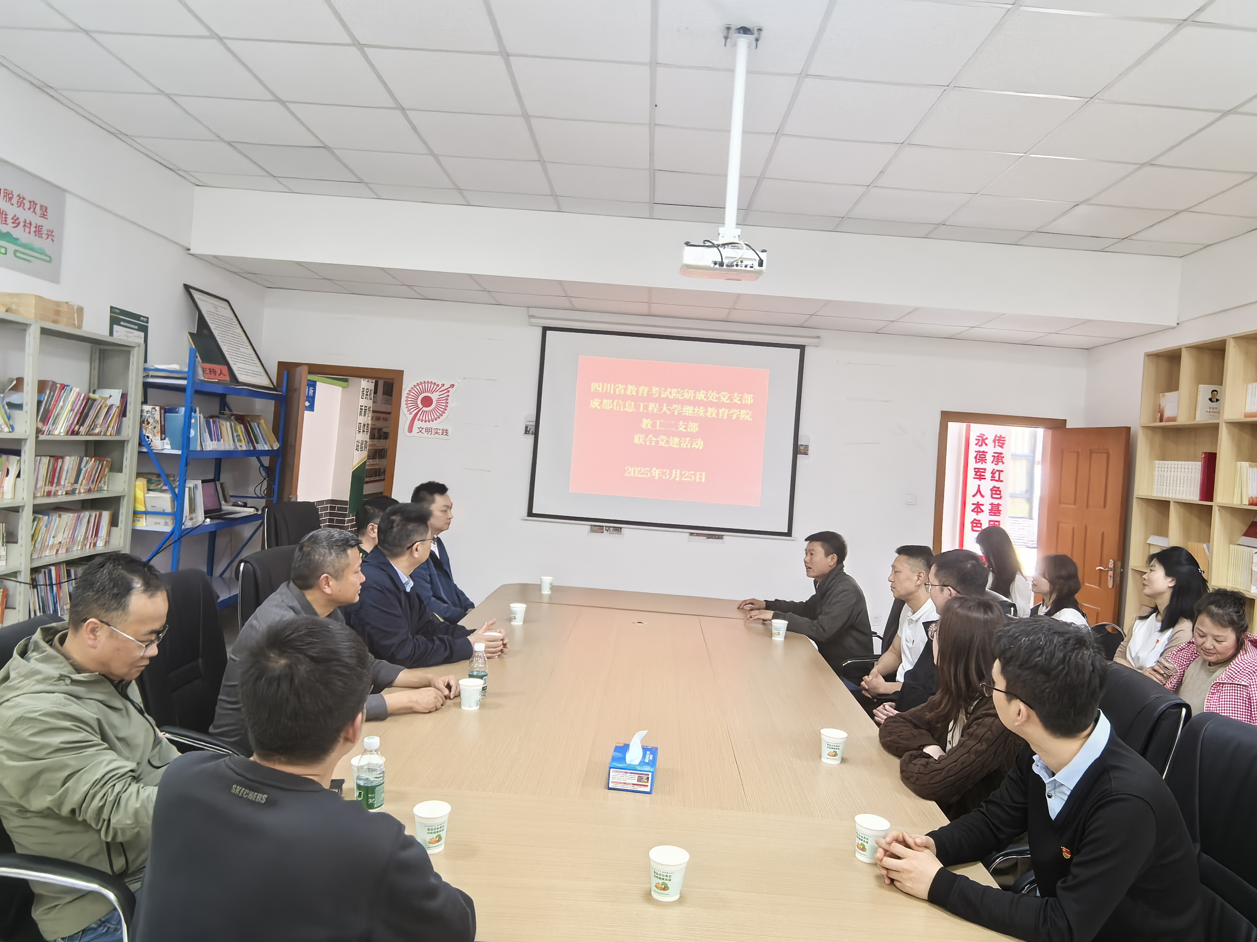 2025年3月25日,四川省教育考试院研成处党支部与成都信息工程大学继续教育学院教工二支部联合开展党建活动。四川省教育考试院党委副书记舒欣、研成处处长吴涛,成都信息工程大学继续教育学院党委书记易平、院长周鑫、副院长狄堃、邹靳等20余名同志参加了本次党建活动。