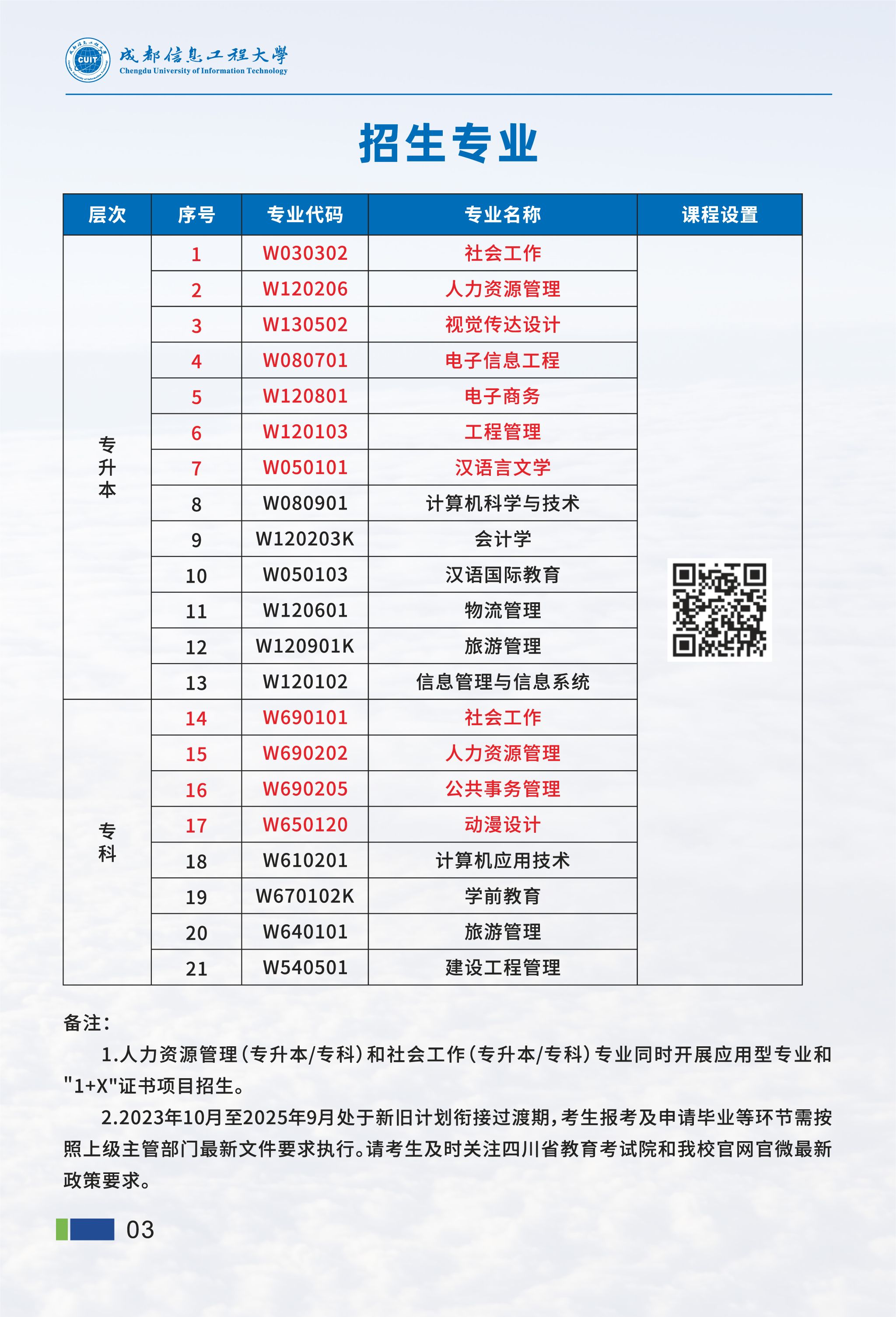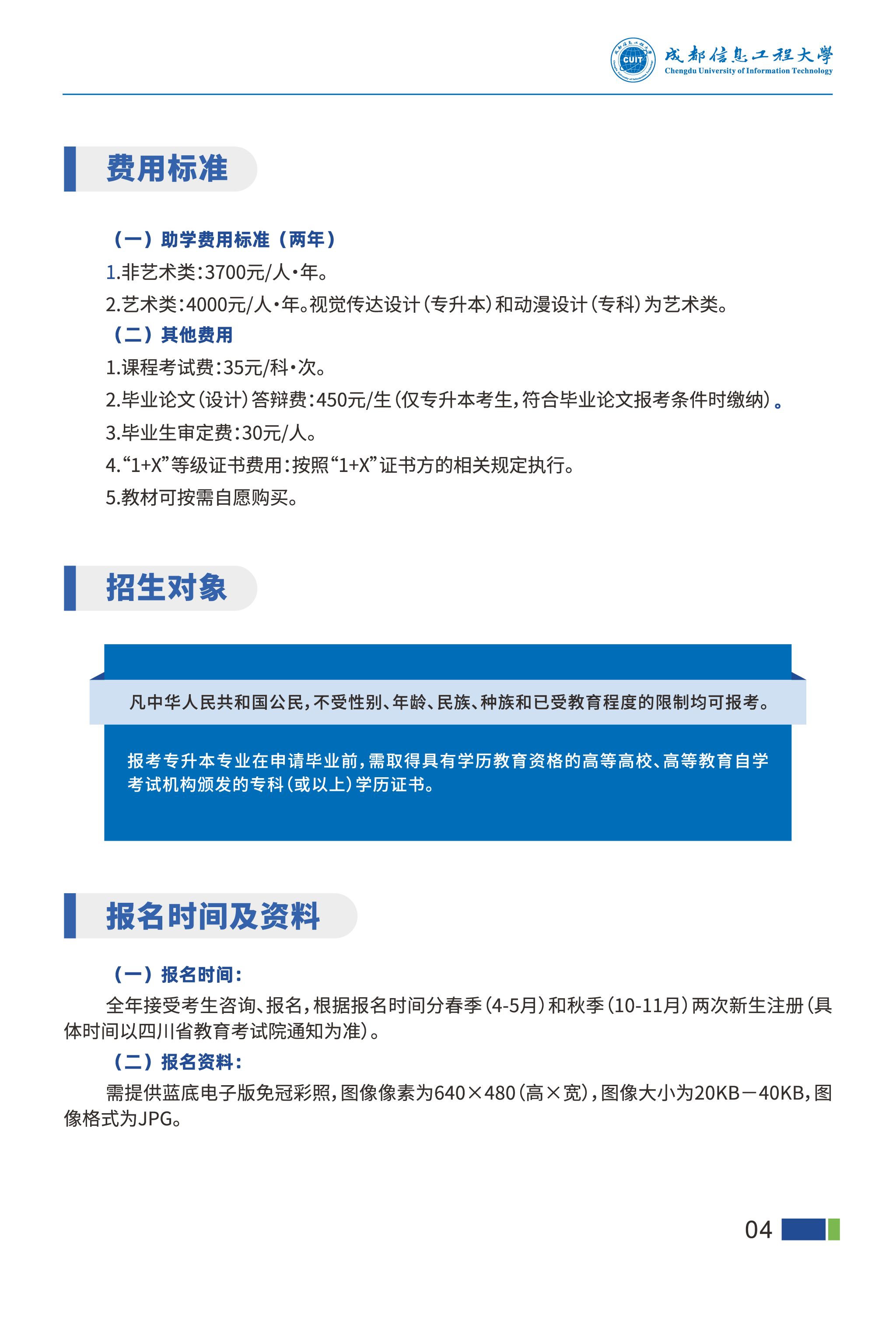 成都信息工程大学2024年秋高等自学考试应用型专业招生简章