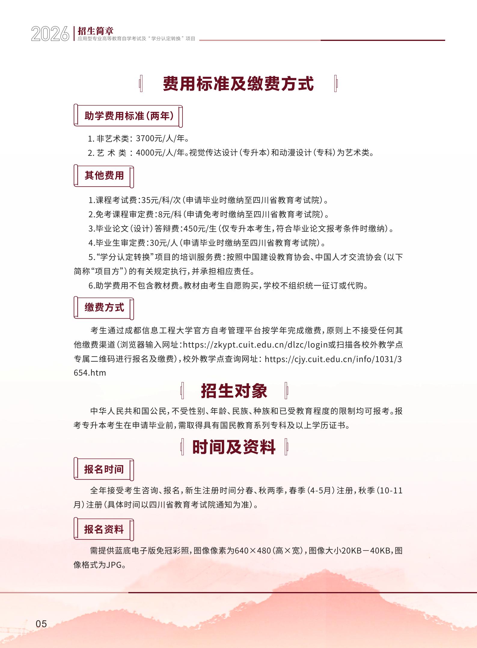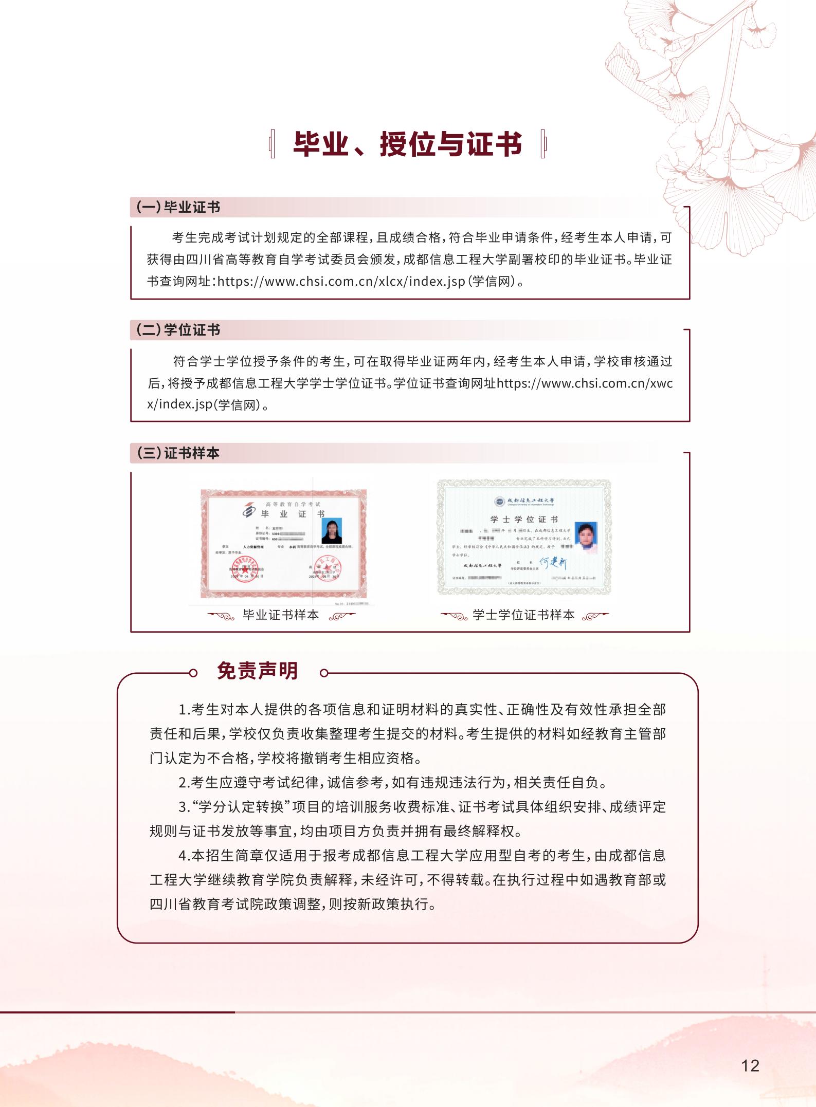成都信息工程大学2025年秋高等教育自学考试应用型专业招生简章