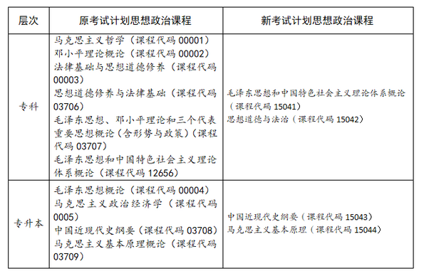 (一)新考试计划各专科、专升本专业均设置“习近平新时代中国特色社会主义思想概论”(课程代码15040),并纳入毕业条件。