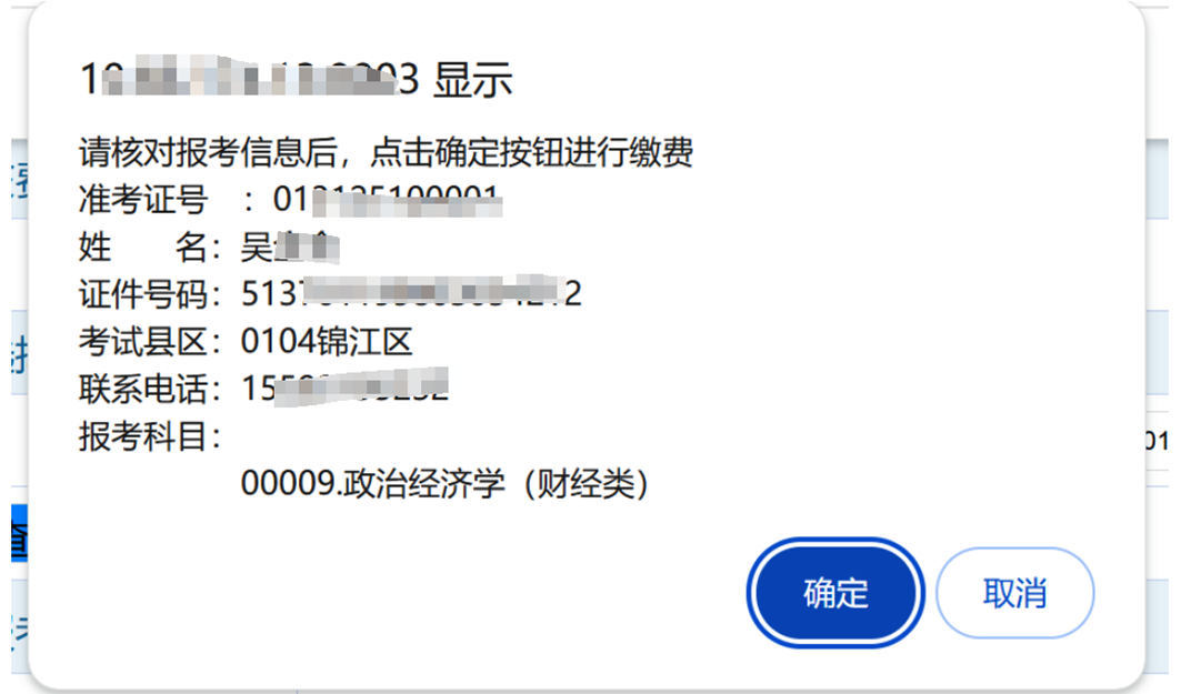 3.若考生需确认缴费是否成功,可重新登录查看(如果点击了“缴费”实际未缴费的,可根据订单信息继续缴费)。