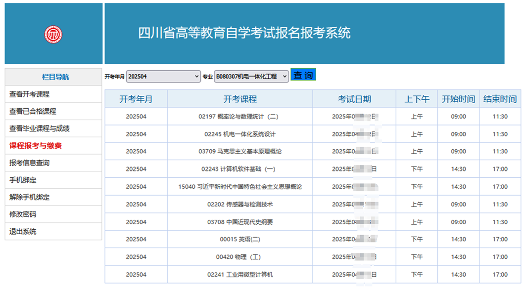 考生可登录系统查看考籍、开考课程等相关信息,并在课程报考前提前绑定手机。