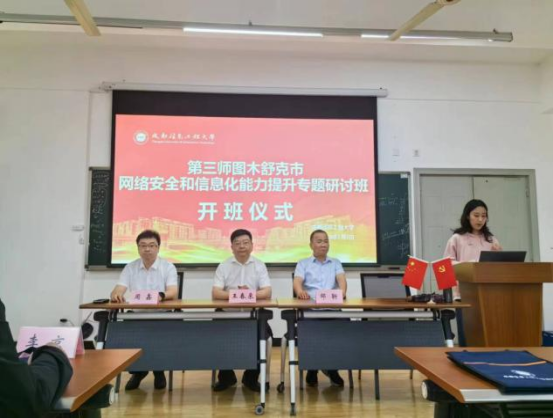 在5月8日举行的开班仪式上,第三师图木舒克市师市党委网信办副主任、三级调研员王春来,成都信息工程大学继续教育学院院长周鑫、副院长邹靳出席并讲话。他们动员学员们认真学习,珍惜来之不易的培训机会,并对培训纪律提出要求。