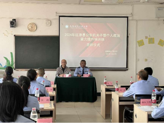 10月15日上午,红原县公安机关干部个人政治能力提升培训班(第二期)开班典礼在成都信息工程大学龙泉校区隆重举行。此次培训的核心目的在于深刻领会并全面贯彻党的二十大精神,以及习近平法治思想的精髓。进一步提升红原县公安机关干部的政治素养、专业能力和履职本领。成都信息工程大学培训中心主任助理王玉军、红原县公安局党委委员副局长益飞出席开班典礼并致辞,为培训班拉开了序幕。