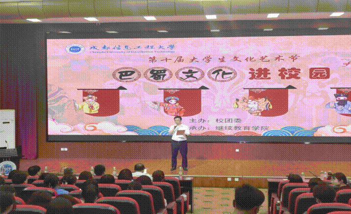 弘扬传承中国传统文化,推青年文化艺术向前发展,展现青年昂扬向上的精神风貌,激励广大青年 紧跟时代步伐,把握时代脉搏,聆听时代声音,由校团委主办,继续教育学院承办的学校第十届大学生文化艺术节之巴蜀文化进校活动56日晚上,在龙泉校区学术报告厅拉开序幕。校团委和龙泉校区各学院领导、师生代表300多人共同观看了演出。