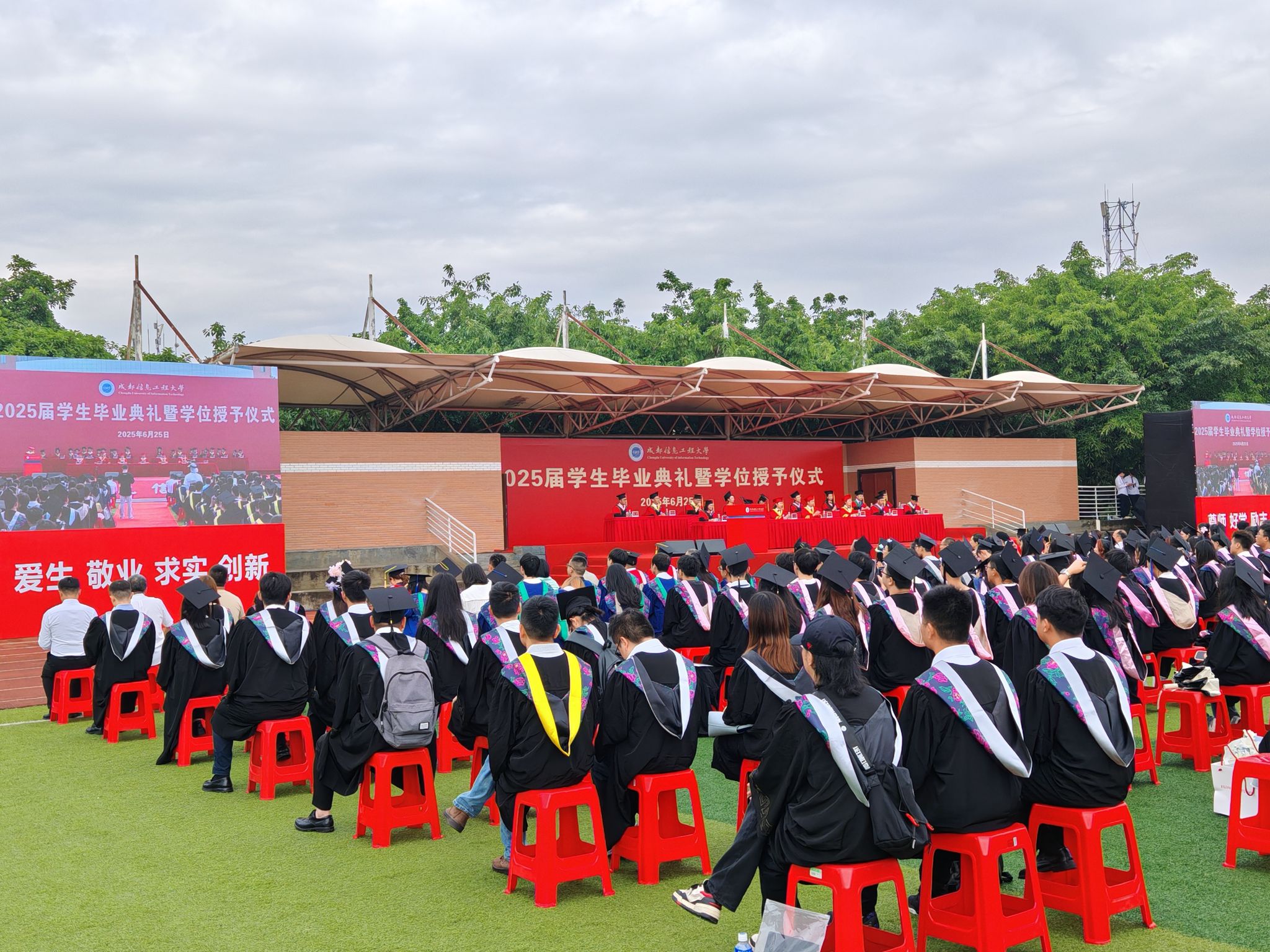 6月25日上午9时,成都信息工程大学2025届学生毕业典礼暨学位授予仪式通过航空港校区与龙泉校区连线同步举行。