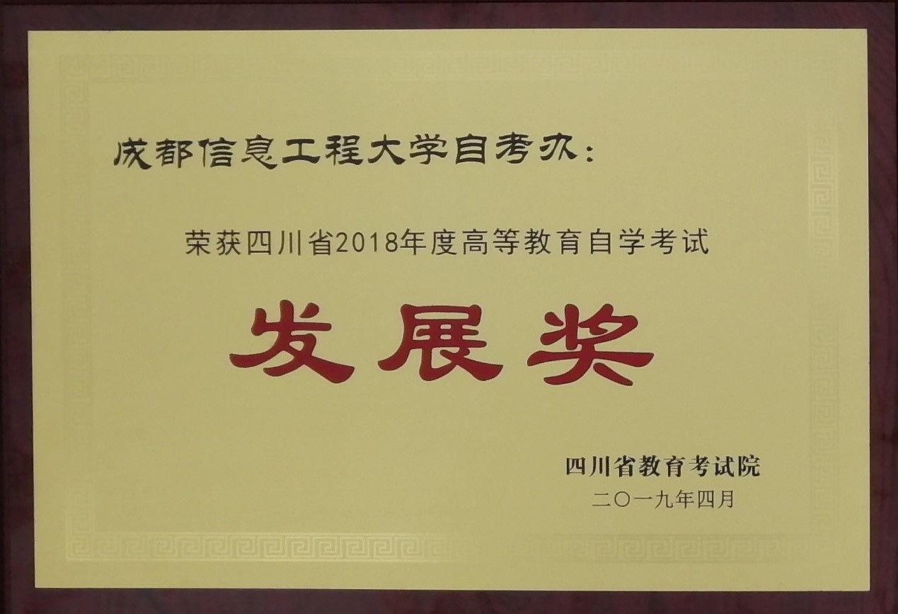 会议通报了我省高等院校2018年度自学考试工作目标考核奖和自考发展奖的评选结果。我校荣获“四川省2018年度高等院校自学考试工作目标考核一等奖”和“自学考试发展奖”。我校继续教育学院院长黎明代表学校作了“确立目标,重塑自身,促进自学考试快速发展”的交流发言。