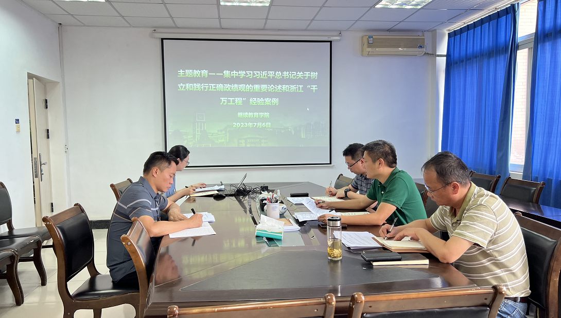 7月6日,继续教育学院中心组举行集体学习会,深入学习贯彻习近平总书记关于树立和践行正确政绩观的重要论述和浙江“千万工程”经验案例。党委书记易平主持并讲话。他强调,要深入学习贯彻习近平总书记关于树立和践行正确政绩观的重要论述,牢固树立和践行正确政绩观,切实把心思和精力放在为党和人民干事创业上,担当实干加快推动高质量发展。必须更加深刻领悟“两个确立”的决定性意义,增强“四个意识”、坚定“四个自信”、做到“两个维护”,切实把浙江“千万工程”经验总结推广好、学习运用好,把握蕴含其中的习近平新时代中国特色社会主义思想的世界观和方法论,不断转化为推进中国式现代化建设的思路办法和具体成效。