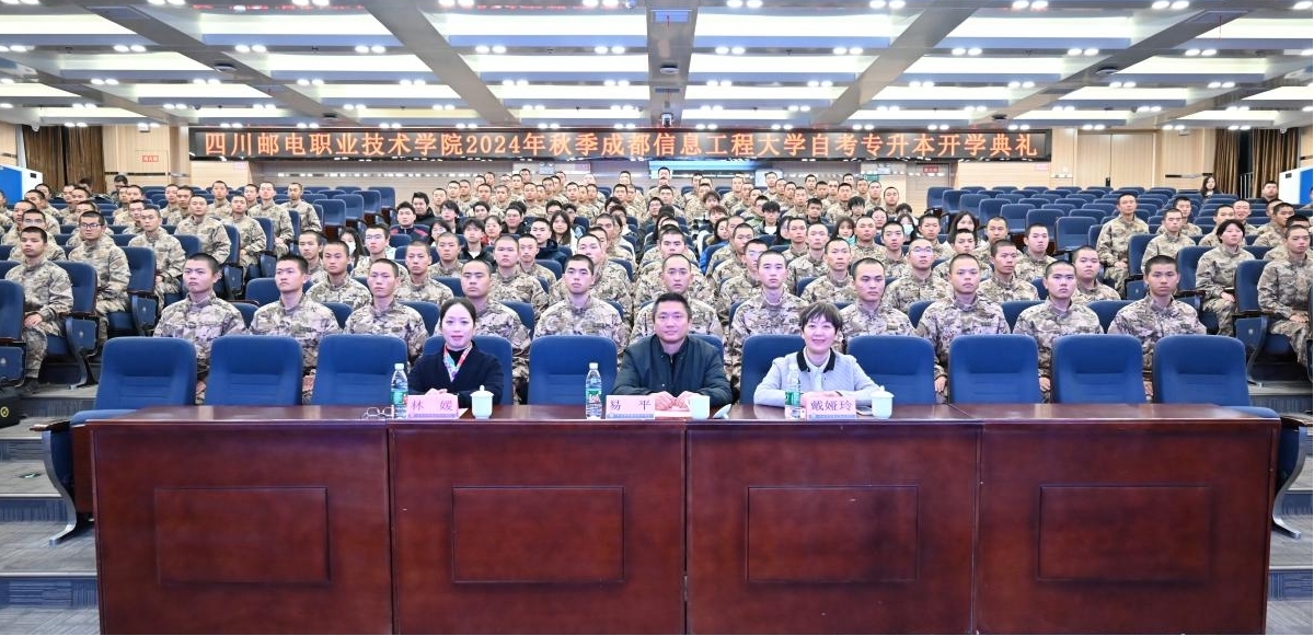 11月26日,“四川邮电职业技术学院2024年秋季成都信息工程大学自考专升本开学典礼”在四川邮电职业技术学院隆重举行,267名新生参加典礼。四川邮电职业技术学院党委委员、副校长戴娅玲,继续教育部主任林媛,成都信息工程大学继续教育学院党委书记易平出席会议。