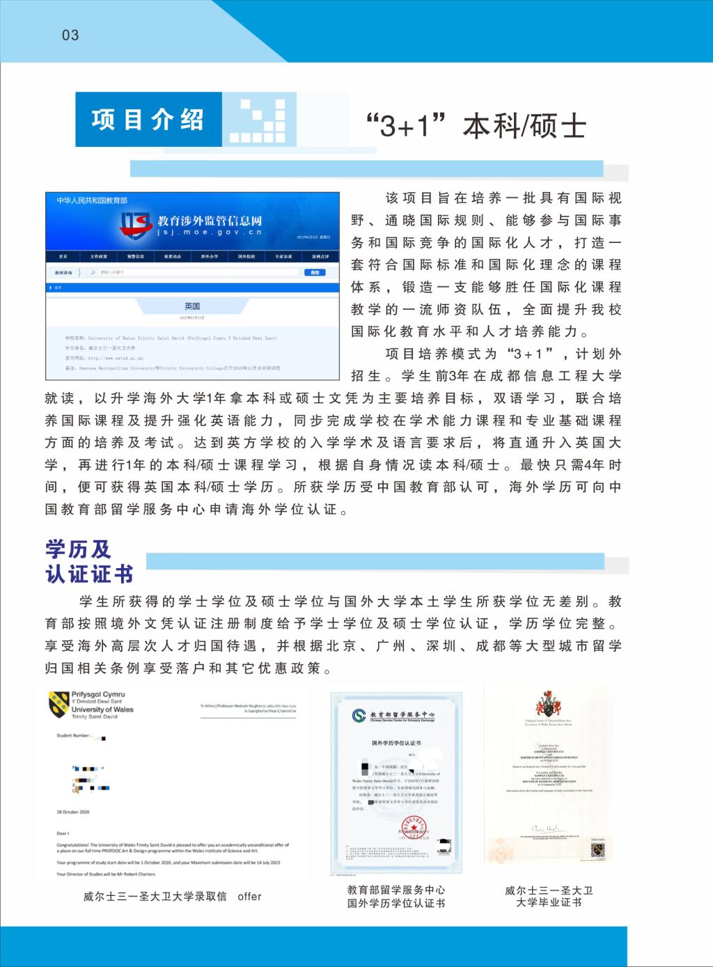 成都信息工程大学2023年国际教育3+1本硕直通招生简章